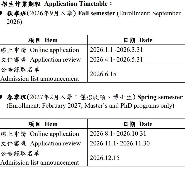 🫶 115學年度外國學生申請入學招生簡章(2026年9月秋季班及2027年2月春季班)